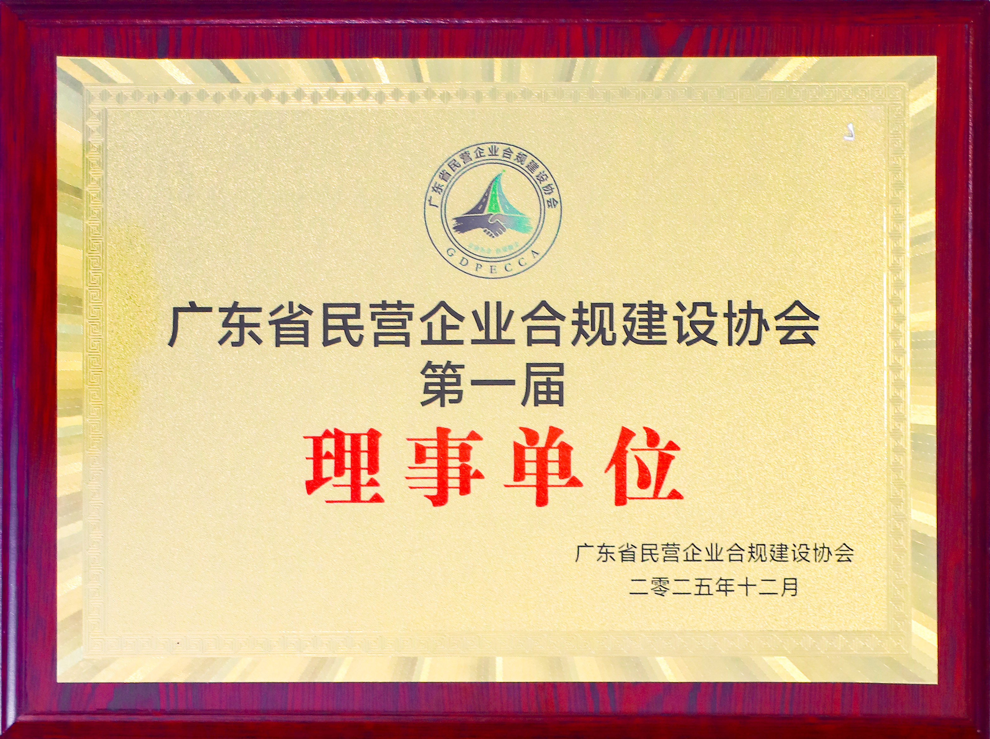 广东省民营企业合规建设协会第一届理事单位 202512【牌匾】