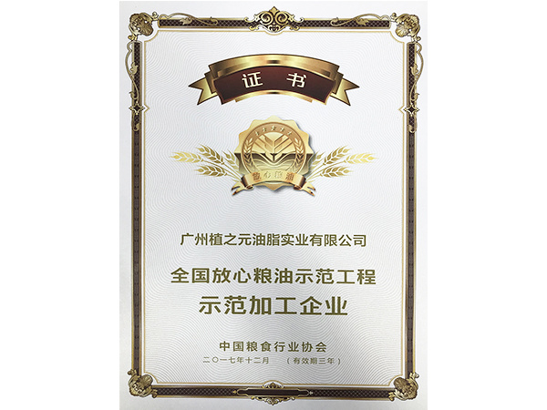 2017年度中国食用油加工企业50强荣誉证书