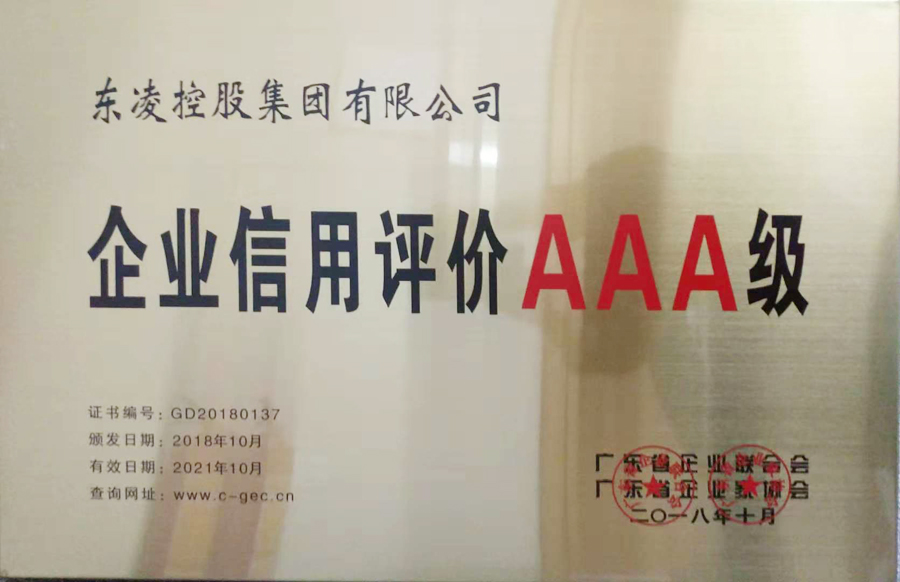 2018年广东省企业信用AAA等级证书
